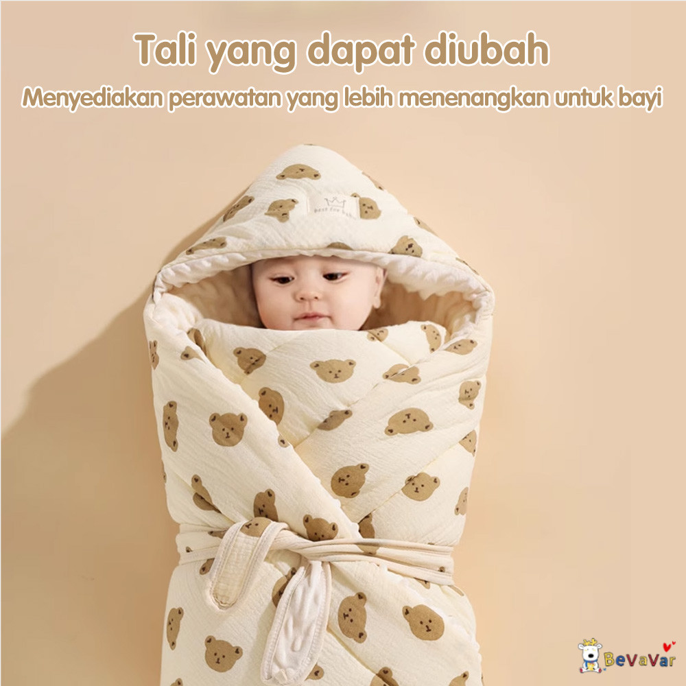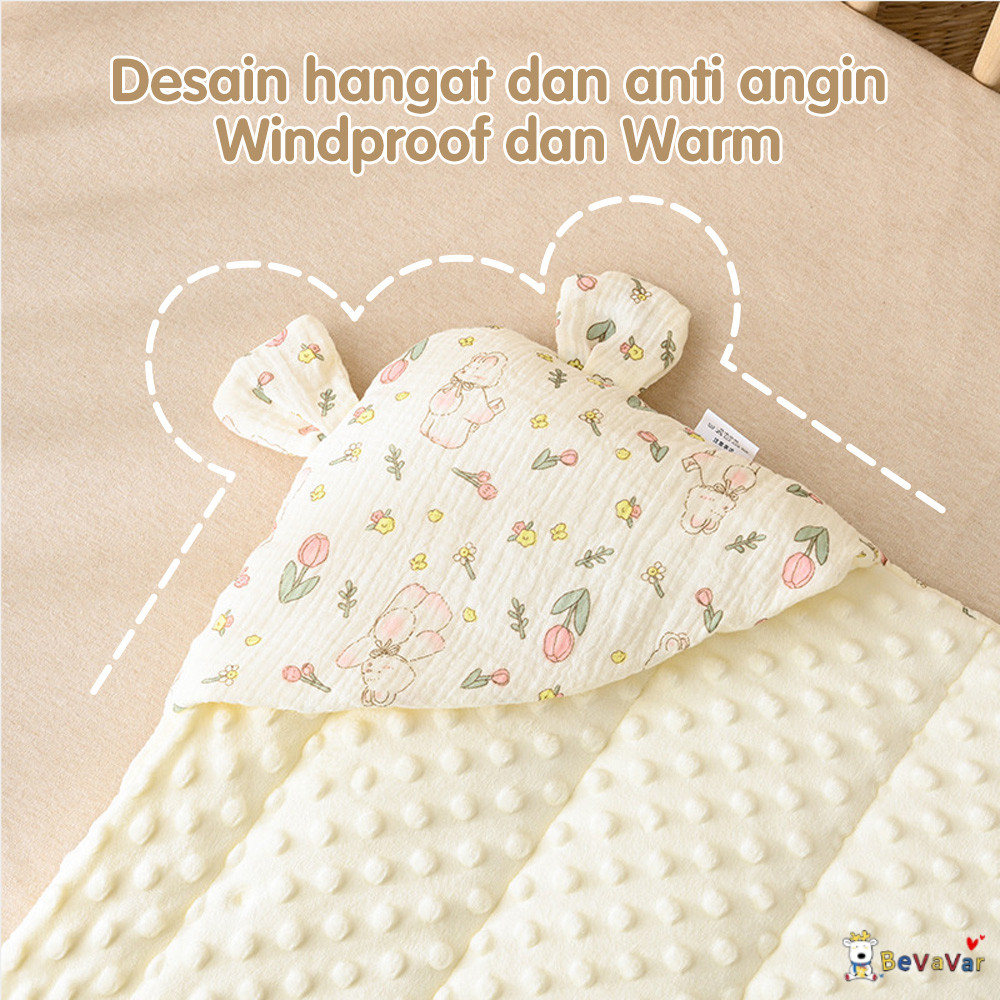 BEVAVAR Selimut Bayi Newborn Lembut Dengan Topi Selimut Bedong Bayi Karakter Baby Muslin Blanket Premium 90X90CM