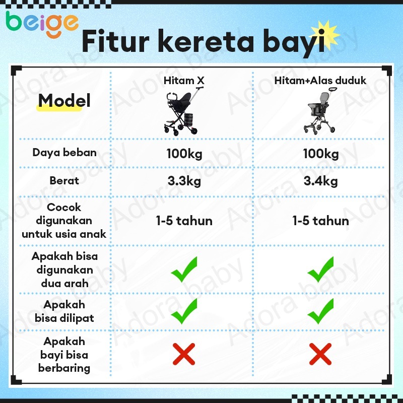 [Garansi 30 Tahun] Stroller Bayi Lipat Travelling 2 Arah Berat Maksimum 50kg Tahun perlengkapan bayi traveling