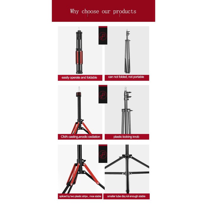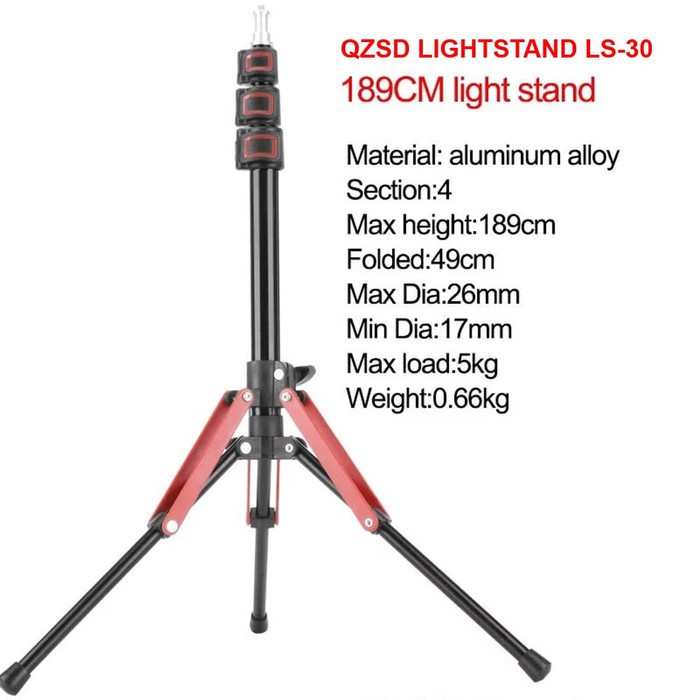 QZSD Lightstand lipat Travel LS-30 190cm - For Ring light Flash Studio Godox LED Strobe SL60W - Light Stand Lipat Compact Ringan