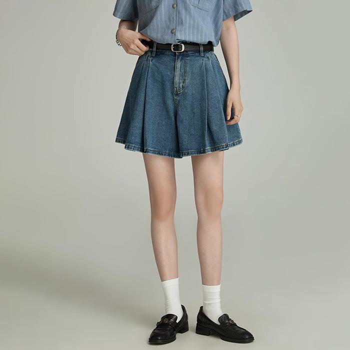 ALICE JEANS-2025 BARU HIGHWAIST CELANA PENDEK JEANS WANITA LOOSE JEANS PENDEK BIRU TUA - BIRU TUA, S