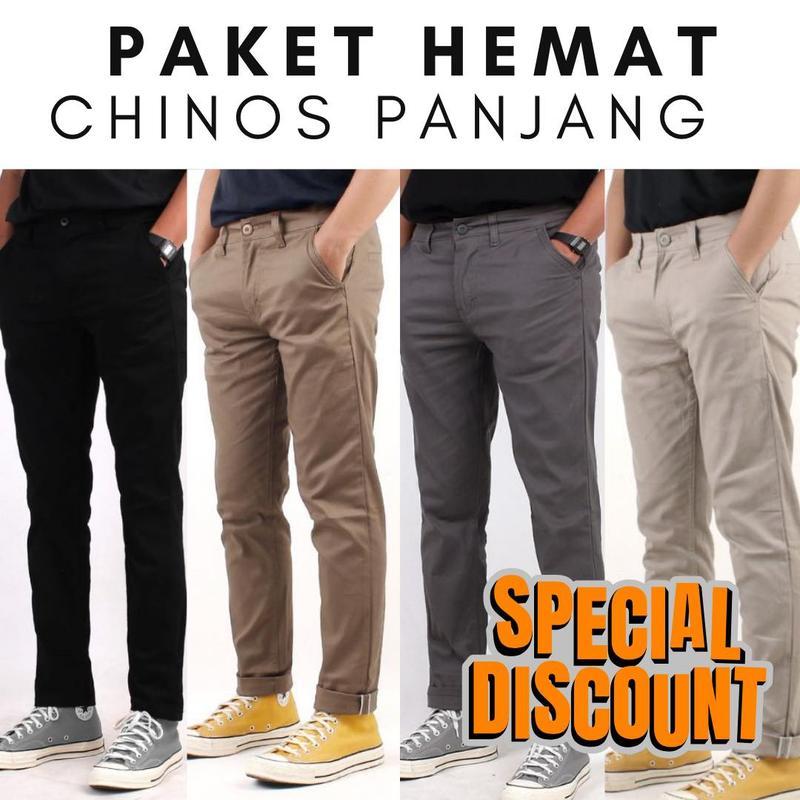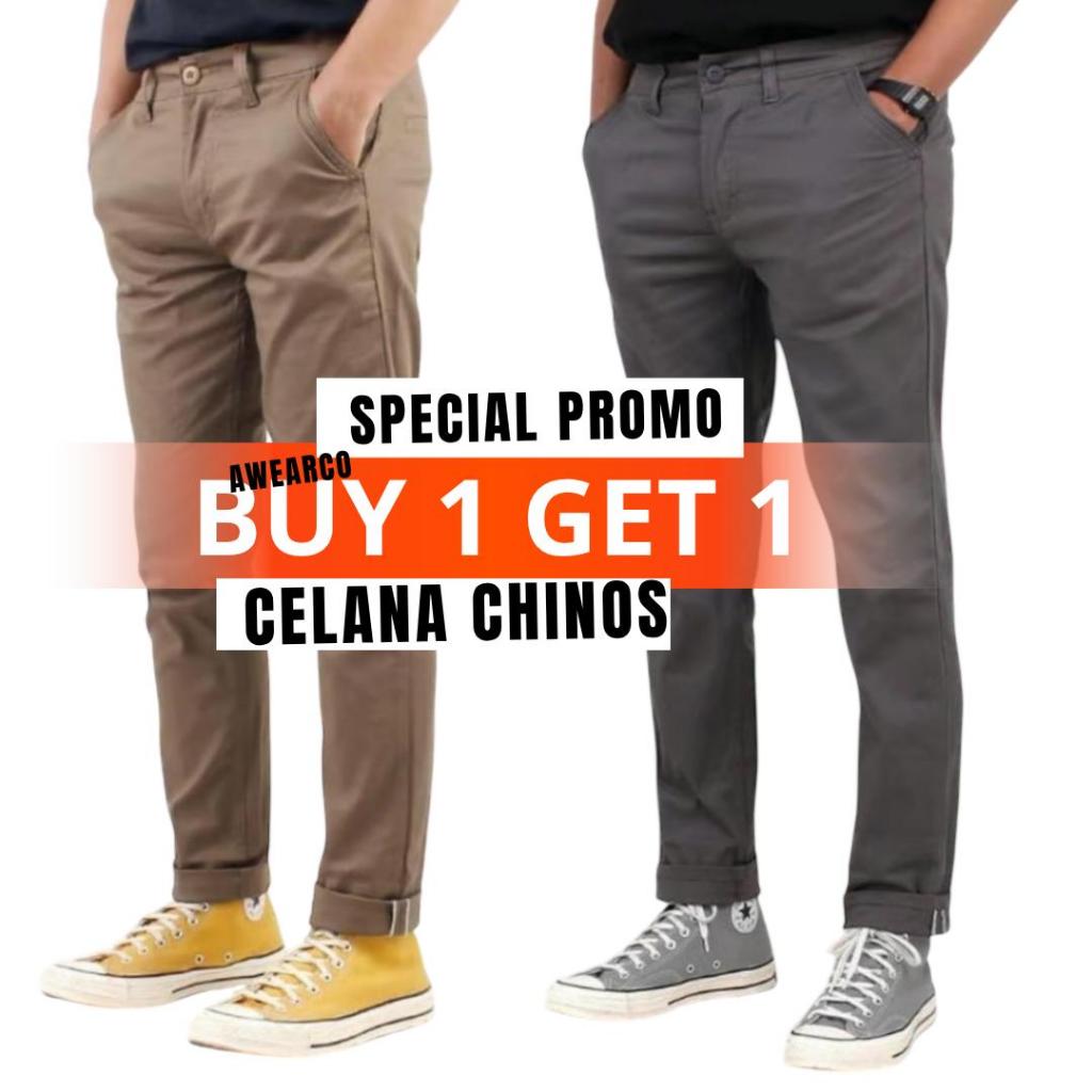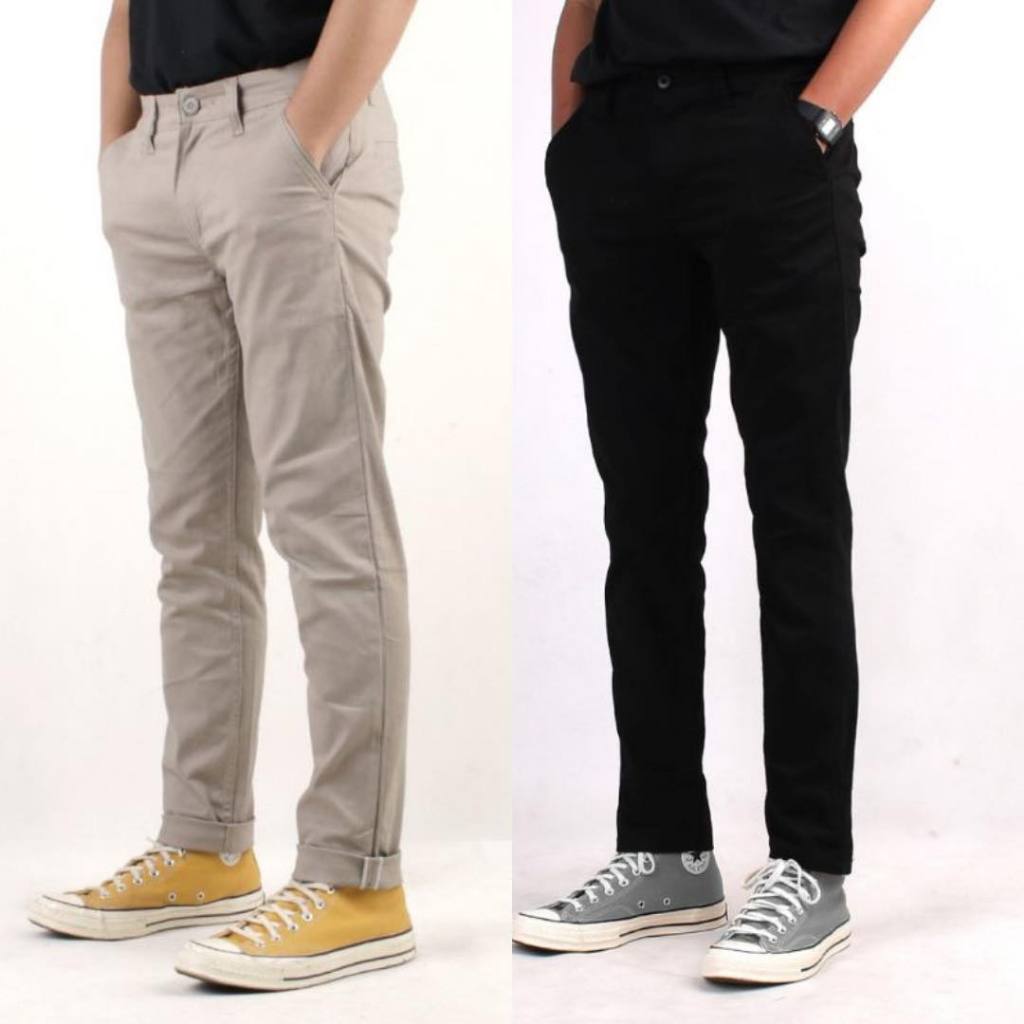 PROMO ( BELI 1 GRATIS 1 ) Celana Panjang Chino Pria Slimfit Celana Premium Bahan Katun Elastis Melar Hitam Abu Moka Krem Bisa