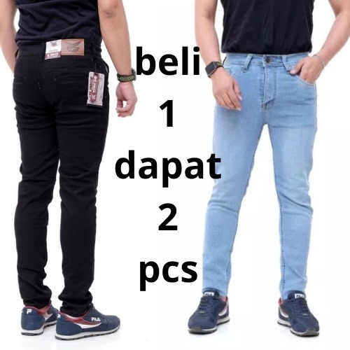 Celana Jeans Pria Slim Fit Terbaru | Celana Denim Cowok Kekinian PAKET HEMAT BELI 1 DAPAT 2 PCS}
