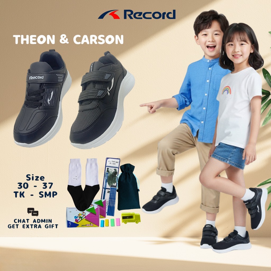 Record Theon Bts Sepatu Sekolah Anak Tk Sd Smp Laki Perempuan Black Hitam Putih Perekat 30-37 4-13Th