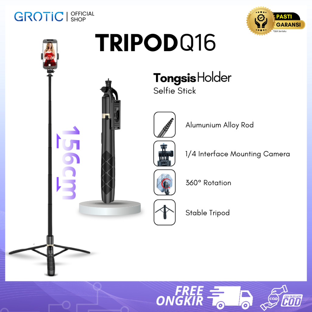GROTIC Tripod HP Kamera Tongsis Monopod Portable 153cm With Remote Bluetooth And Screw Mount 1/4 Q16