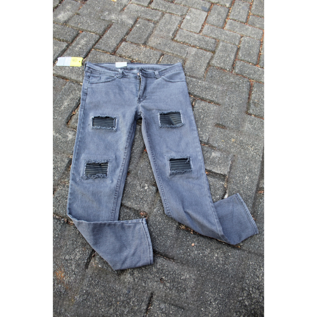 Celana sobek tambal Leather patch / Celana panjang jeans sobek pria pakai lapisan