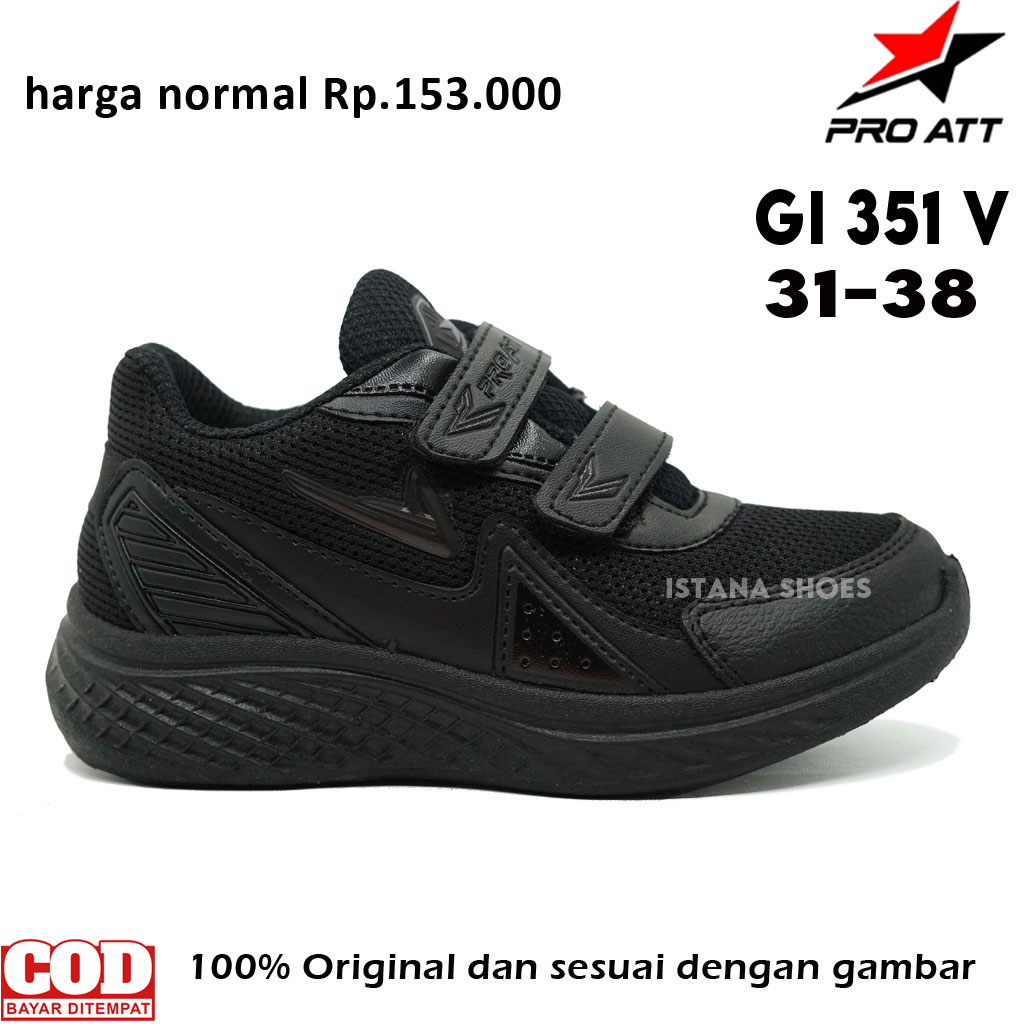 Sepatu Sekolah Anak Laki Laki Perempuan Tk Sd Smp Pro Att Gi 351 V Full Hitam Perekat Sneakers Casual
