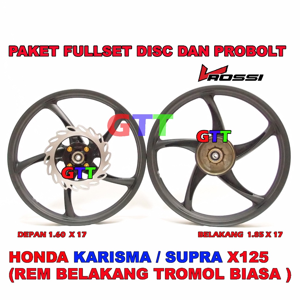 VELG RACING VROSSI HONDA KARISMA DAN SUPRA X 125 REM BELAKANG TROMOL LEBAR 140/160 DAN 160/185X17.