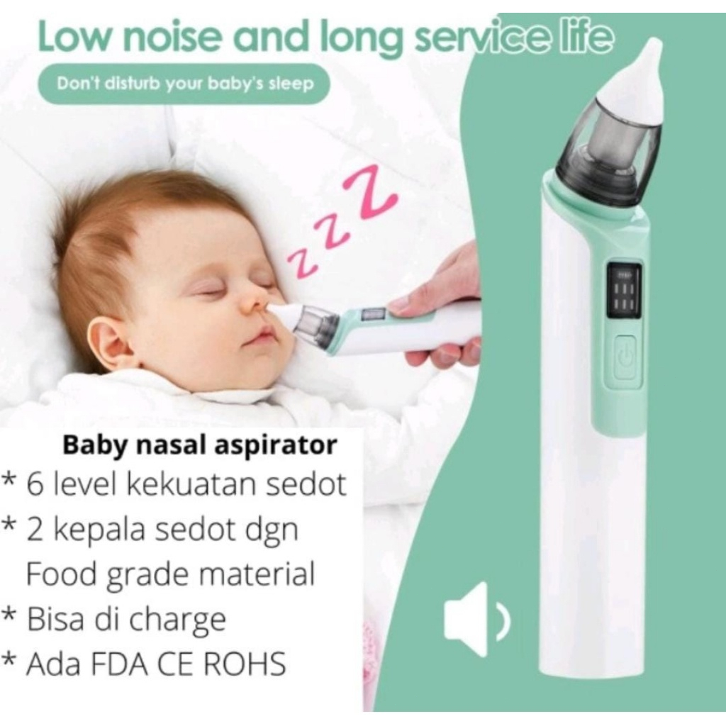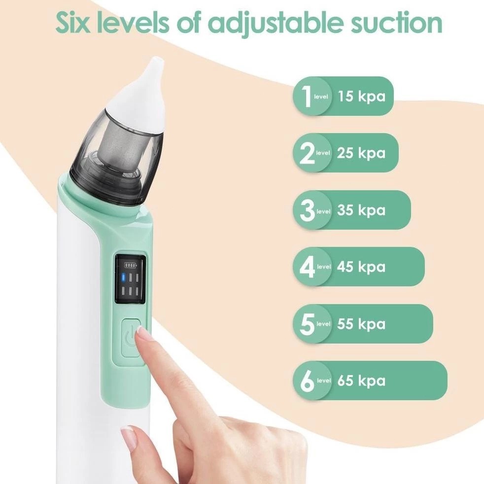 Aspirator hidung elektrik bayi, pengaturan gigi 1-6, tidak merusak mukosa hidung, silikon food grade, dapat diisi ulang