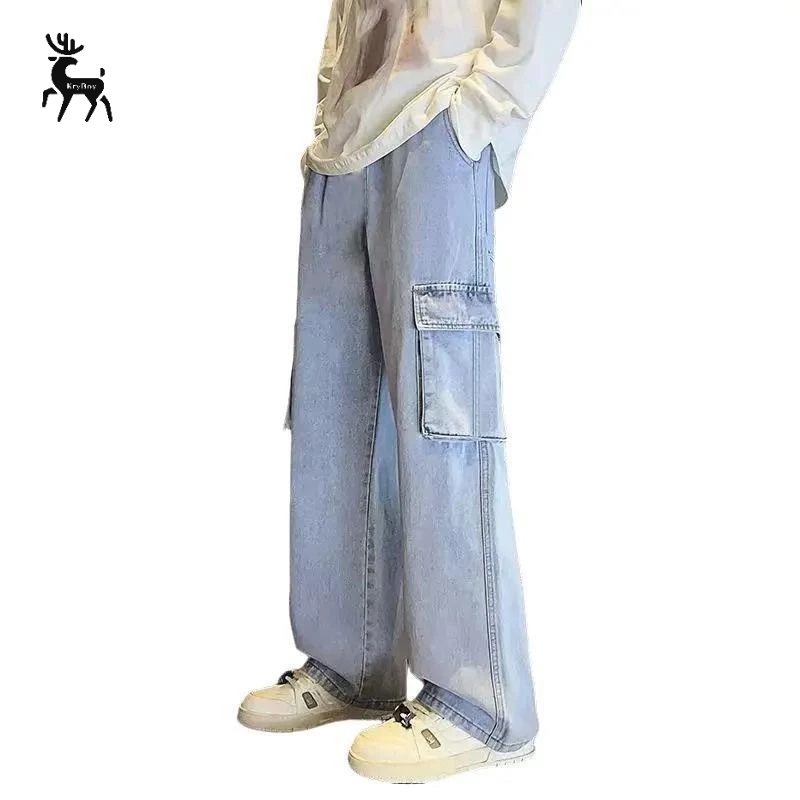 KeyBoy Celana jeans pria cargo panjang baggy kulot celana straight dewasa kargo denim pants cowok casual korean style