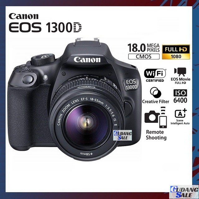 [NEW] KAMERA CANON EOS 1300D + LENSA KIT 18-55MM IS WIFI - GARANSI 1 TAHUN - CAMERA DSLR 4000D 1200D