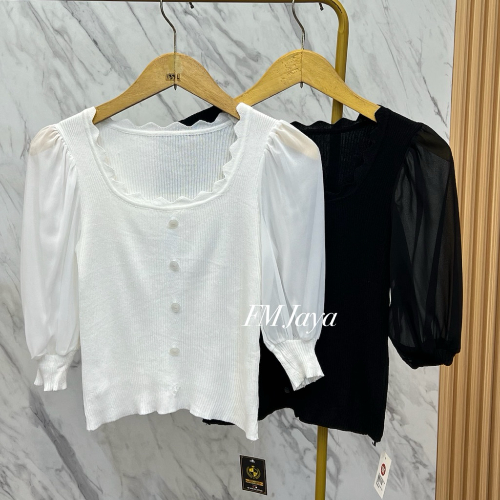 ATASAN RAJUT WANITA PREMIUM 7233 || KNIT T0P || ATASAN RAJUT HITAM PUTIH || KNIT BLOUSE WANITA