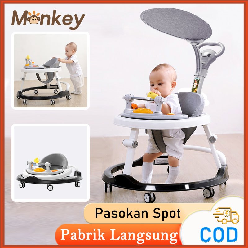 Monkey Baby Walker Roda Bayi 7 Tingkat Adjustable Lipat Musik Family Kereta Dorong Bayi Bisa Lipat Ada Mainan Ada Pegangan
