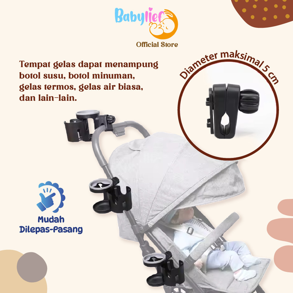 Babylief Stroller Accessory Cup Holder – Anti Slip, Stabil & Gampang Dipasang ke Gagang BL081