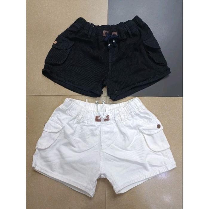CELANA JEANS HOTPANT KARGO HITAM DAN PUTIH 27-34 - HITAM, 27