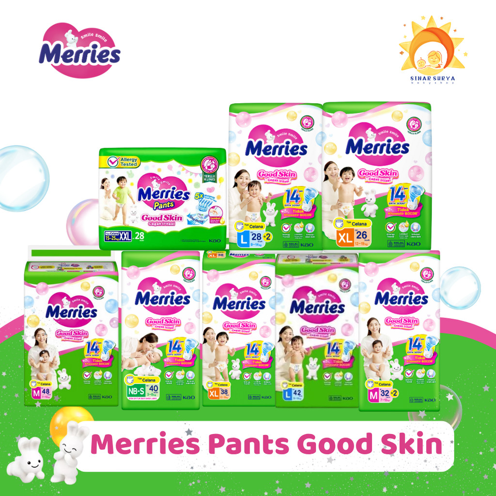 Merries Pants 1 CARTON (ISI 4 PACK) Good Skin Popok Celana S40 / M32 / L28/ M48/ L42 / XL26 / XXL28