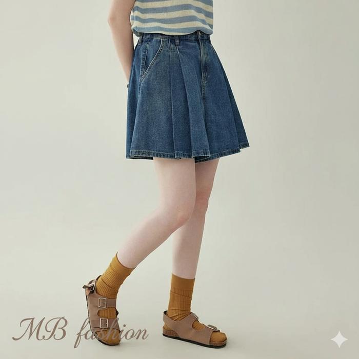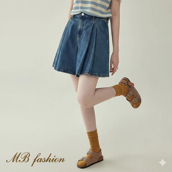 MB FASHION JEANS-CELANA PENDEK JEANS WANITA FASHION HIGHWAIST KEKINIAN BIRU TUA MODEL TERBARU - BIRU TUA, S