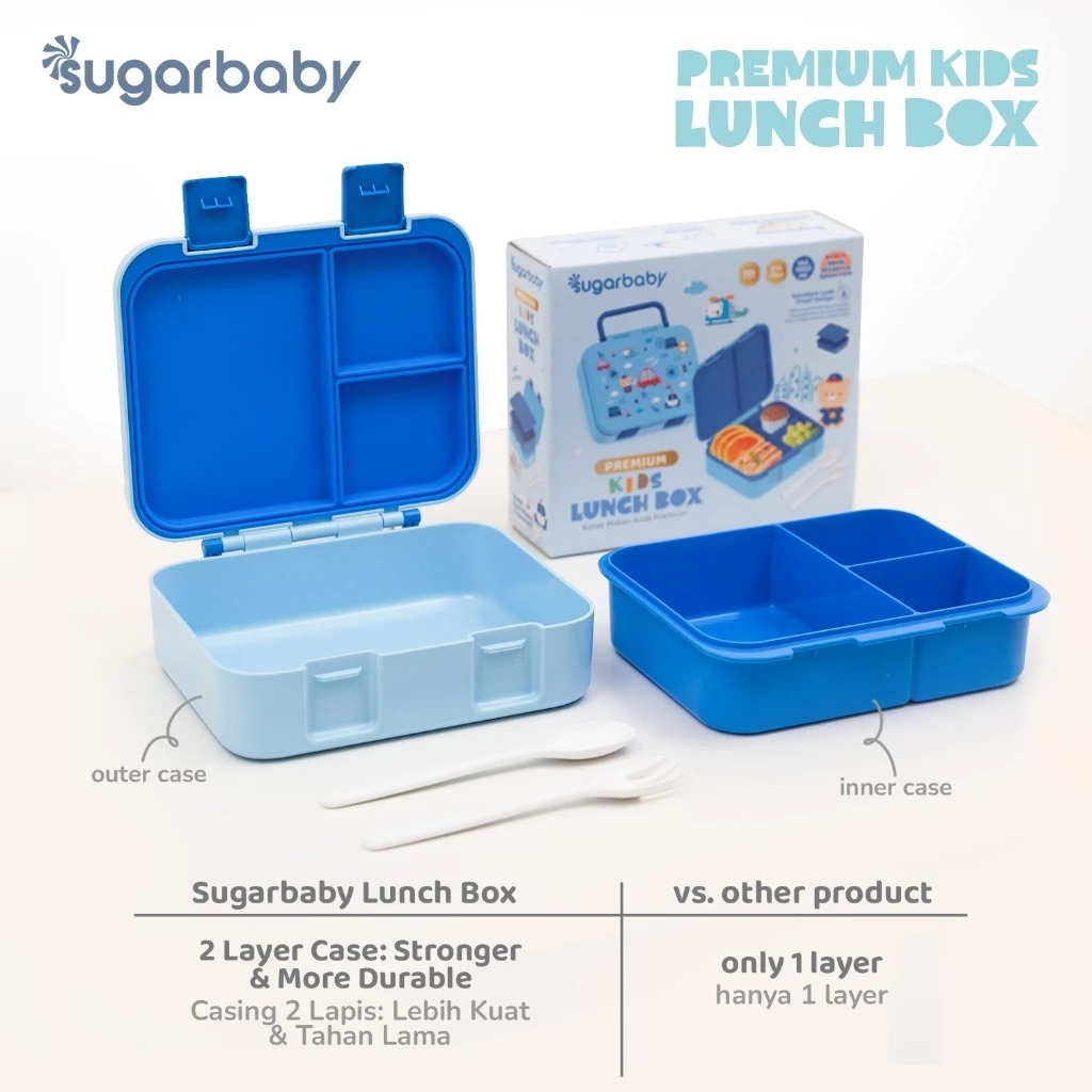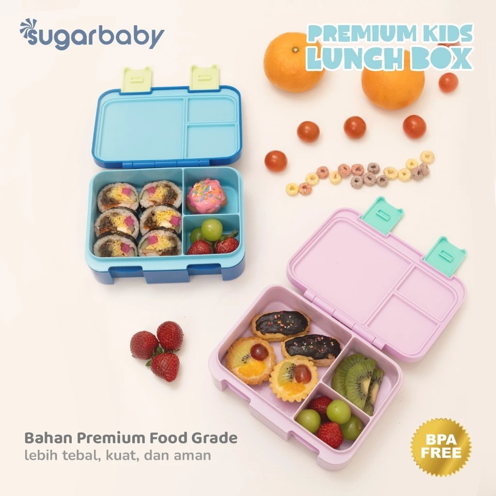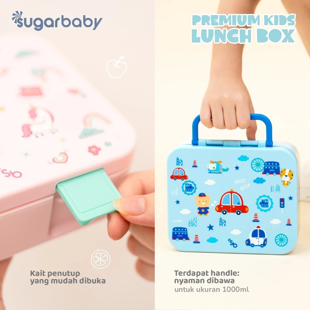 Sugar Baby Premium Kids Lunch Box / Kotak Makan Dengan Pegangan dan Sekat Anti Tumpah / Set Tempat Makan Dengan Sendok