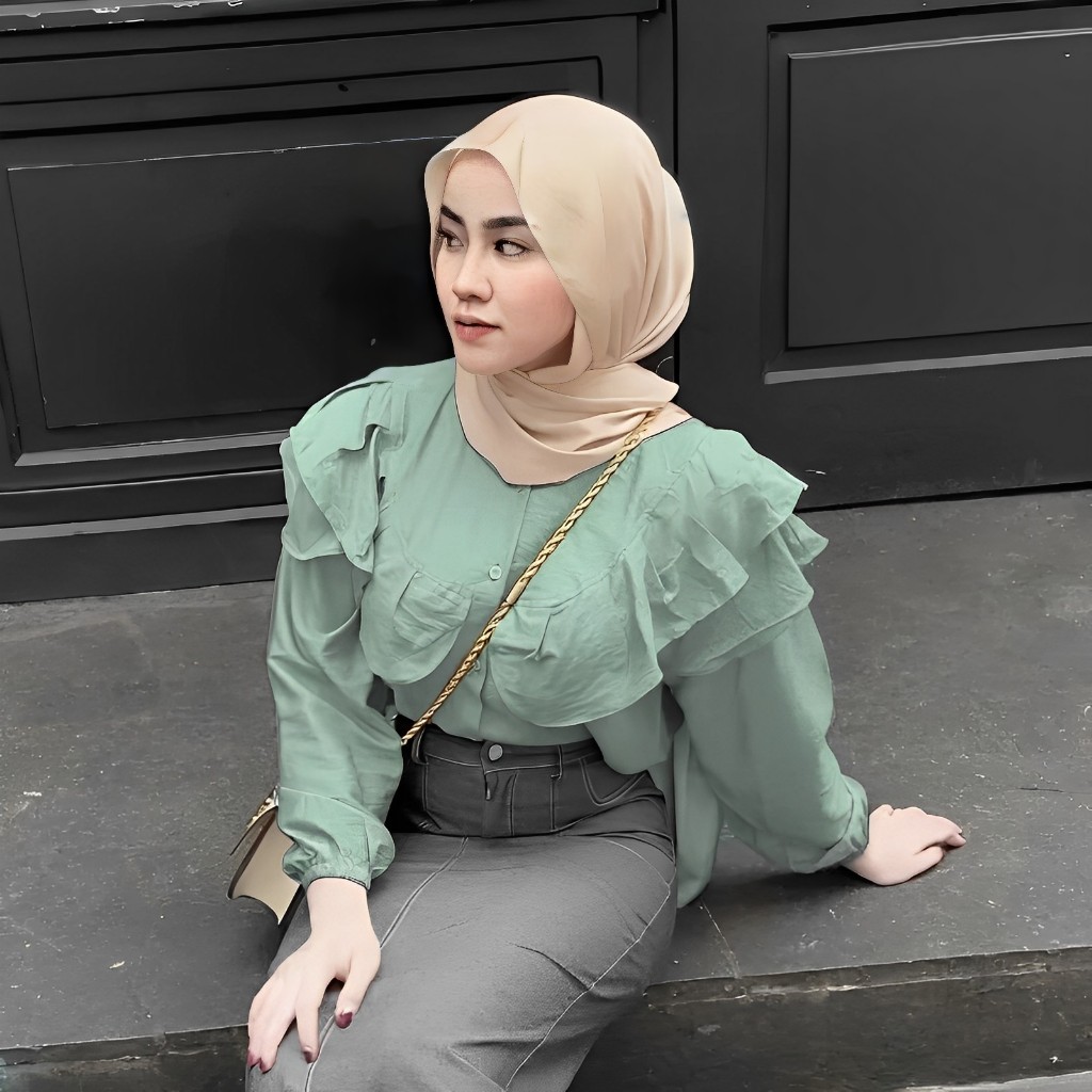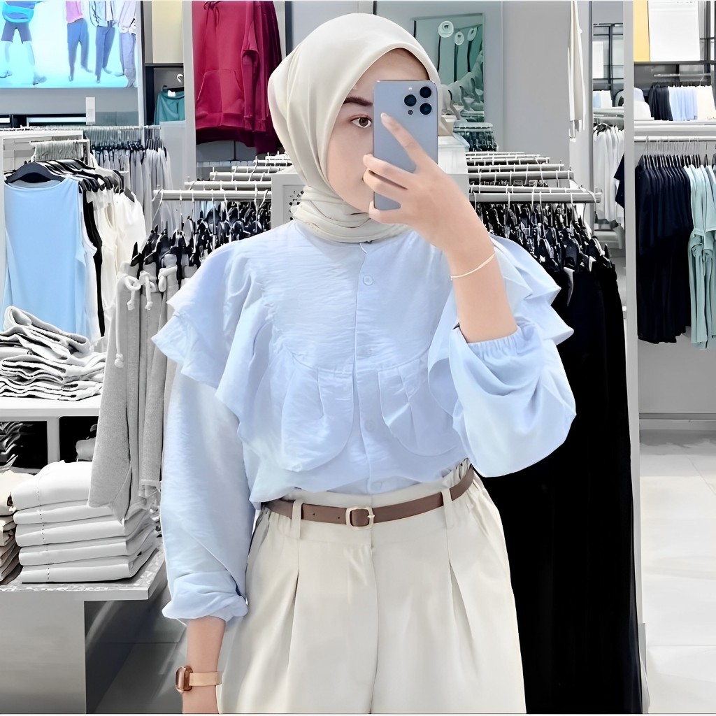 blouse wanita ruffle/blouse wanita korean style/baju atasan wanita terbaru/kemeja wanita lengan panjang/atasan wanita putih