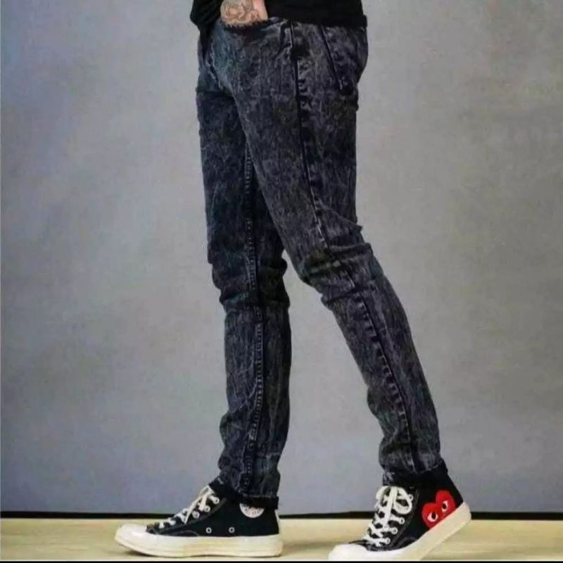 Celana Jeans Panjang Pria Snow Hitam Skinny Slim Fit
