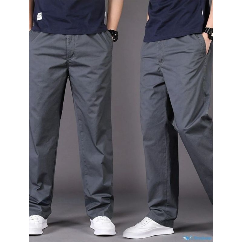 FULLOT-Celana Pria Gombrong Skena Korea Stlye Celana Pria Chinos Panjang Katun Twill Stretch Melar