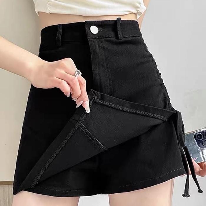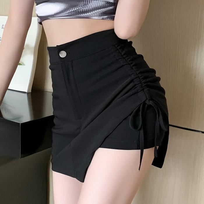 SP145 ROK CELANA PENDEK SERUT HIGHWAIST / HOT PANT / MINI SKIRT / CELANA PENDEK - HITAM, S