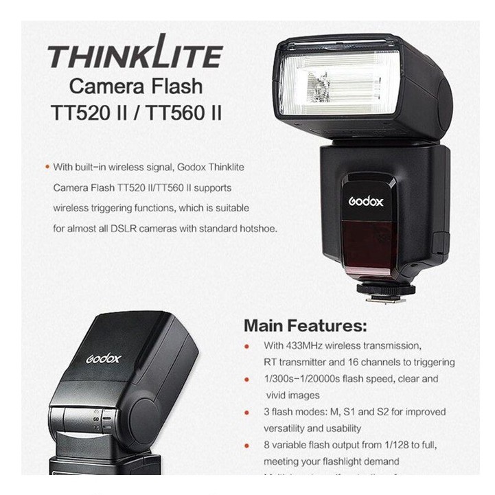 FLASH GODOX TT520II PLUS TRIGGER WIRELESS ORIGINAL FREE Diffuser
