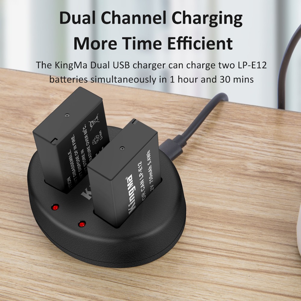 KINGMA Battery Canon LP-E12 2-Pack with Dual Charger - Non Lcd Display