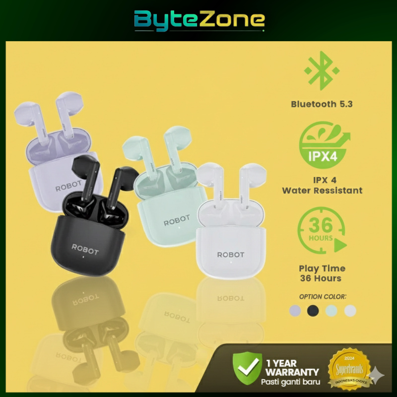 [Mall] ROBOT T60 TWS Earphone Bluetooth 5.3 Headset Wireless Mini Earbuds | 36 Jam Playtime, IPX4 Waterproof✨
