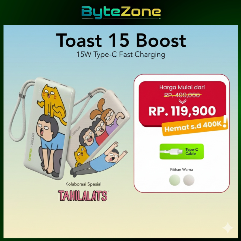 [Mall] Oraimo x Tahilalats Power Toast 15 Boost | Power Bank 10.000mAh 15W Fast Charging Type-C | Desain Cute✨