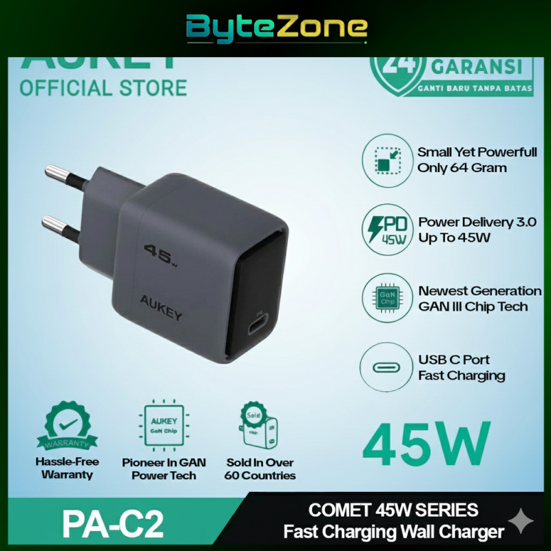 [Mall] AUKEY PA-C2 Comet 45W Series | Charger Type-C GaN III 45W PD 3.0 PPS Super Fast Charging✨
