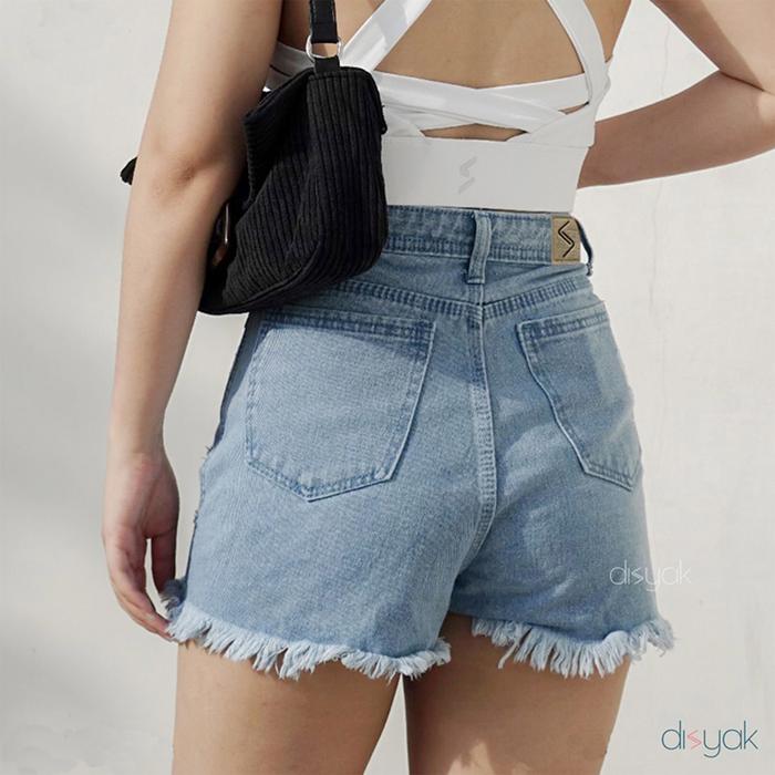 DISYAK - HOTPANTS JEANS CELANA PENDEK WANITA NON STRETCH RIPPED 1032-2032 LIGHT BLUE - LIGHT BLUE, 27