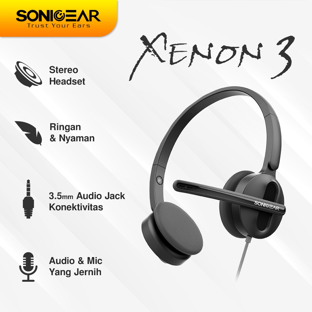 Headset Microphone Headphone SonicGear Xenon 3 untuk Office Sekolah Gaming | Portable Light Weight