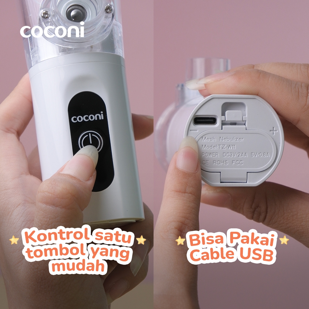 Coconi Portable Nebulizer – Alat Uap Bayi & Dewasa | Bisa USB & Baterai | Super Hening