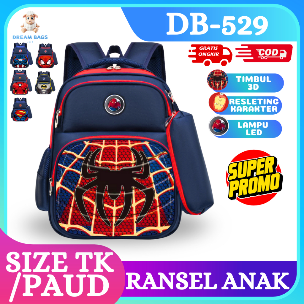 Tas Sekolah Anak Laki Laki Tk Karakter Timbul 3D Led - Dream Bags Db529 - Ransel Paud Import Terbaru