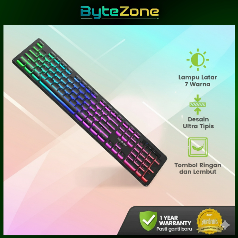 [Mall] ROBOT RK40 Keyboard Gaming Kabel | RGB 7-Color Rainbow LED Backlit, Full Size, Tahan Lama & Nyaman Dipakai✨