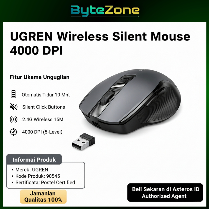 [Mall] UGREEN 90545 | Mouse Gaming Wireless 2.4G Silent Click 4000 DPI Ergonomis✨