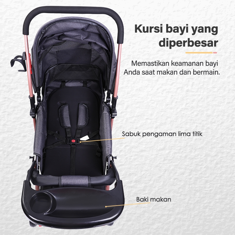 Topborn Stroler Kereta Dorong Dapat Dilipat Dapat Disesuaikan Dua Arah Ruang Yang luas Dapat Duduk Dan Berbaring Cocok Untuk Bayi Baru lahir