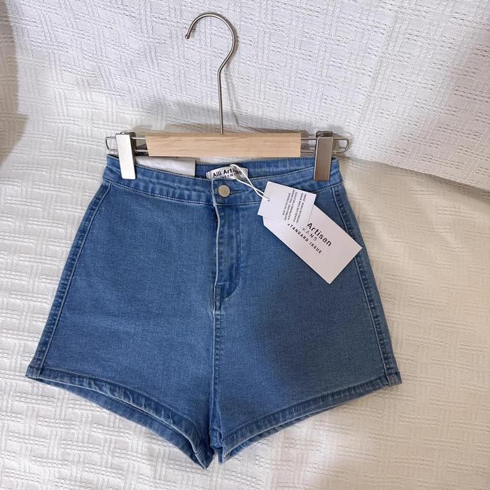 JUMBO CELANA PENDEK JEANS STRETCH WANITA HOT PANTS KOREA KULOT SHORTS PANTS JEANS KETAT PINGGANG TINGGI A-LINE - BIRU, M