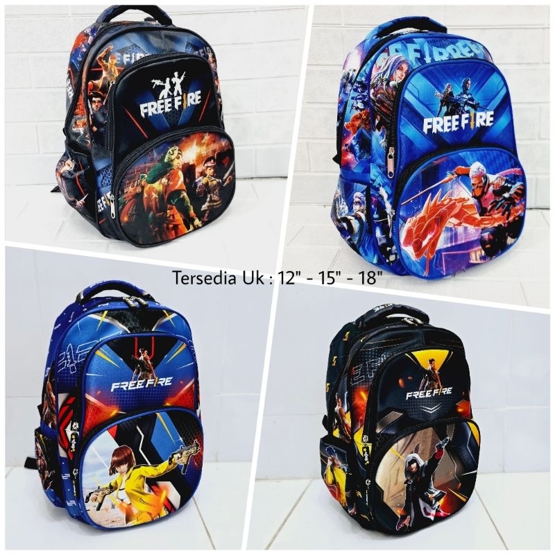 Tas Ransel 12" - 15" - 18" Free Fire (3 Kantong) Cocok Untuk Anak Tk - Sd