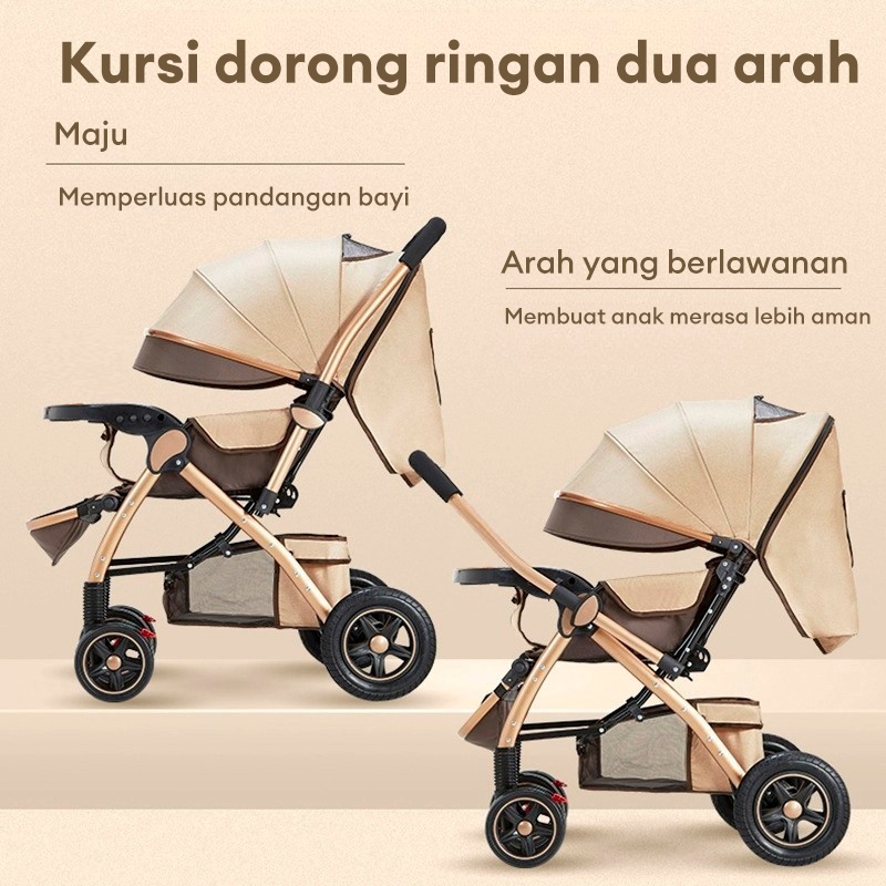 BEIGE Stroller Bayi Lipat 2 Arah Muatan 100kg Ringan untuk Travel Aktivitas Harian
