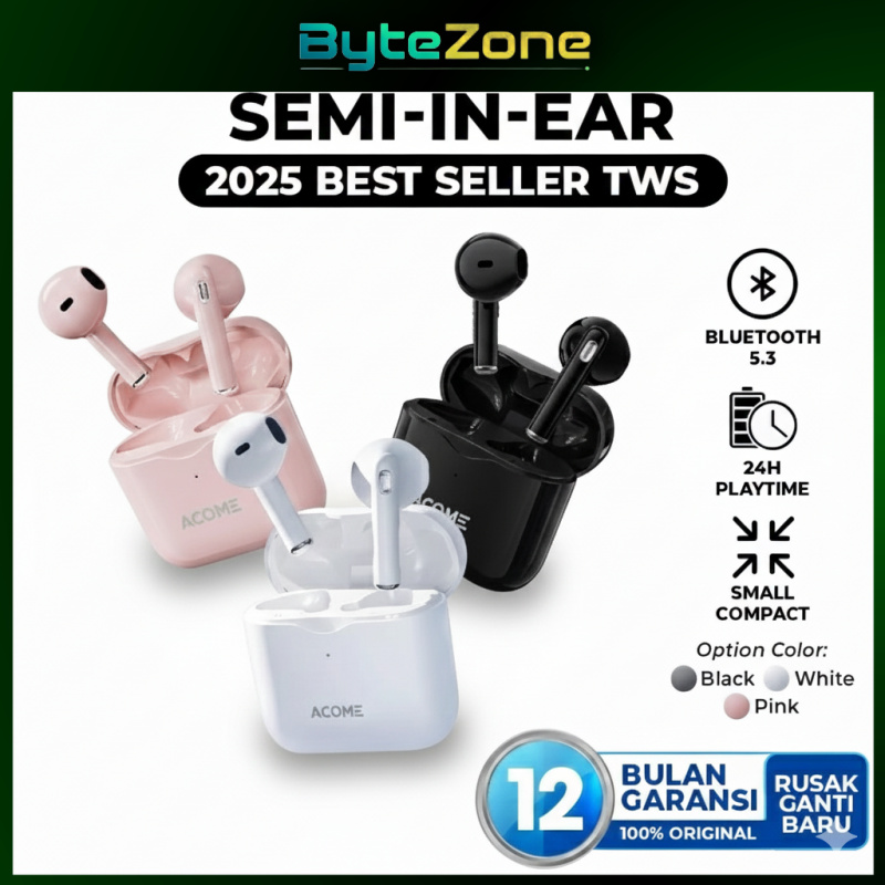 [Mall] Acome AT01 | TWS Bluetooth 5.3 Earphone | Ultra Light 3.9g | IPX4 Waterproof | Garansi Resmi 1 Tahun✨
