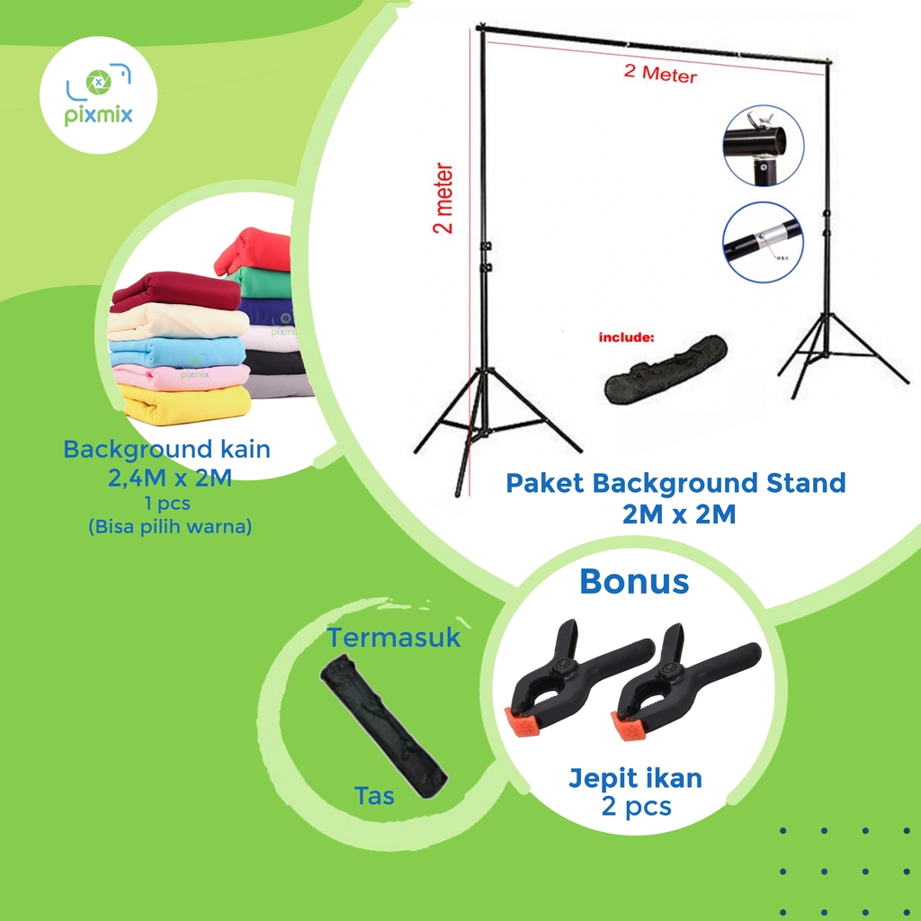 Background stand 2 x 2 meter | paket dengan background kain 2 x 2,4 m
