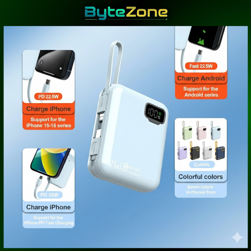[Mall] MIXIO MP-09 | Power Bank Mini 10000mAh 20W | Kabel Fast Charging Lightning & Type-C, Cocok untuk IP / Anroid✨
