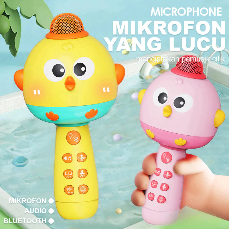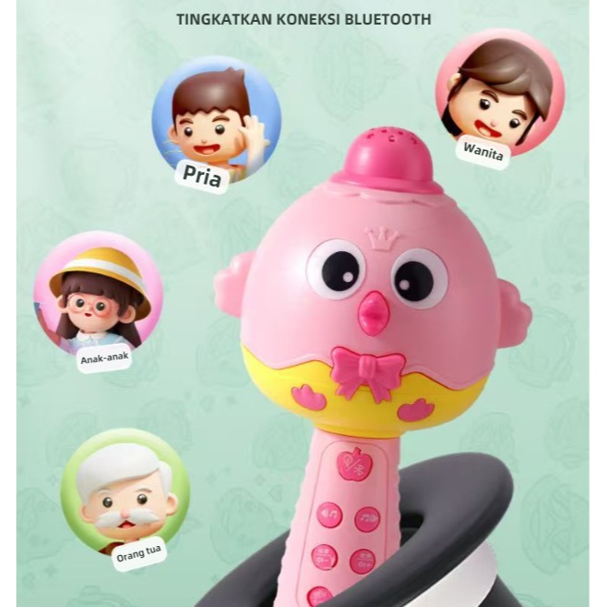 Multifungsi Mikrofon Anak Bluetooth Wireless Speaker Mainan Mikrofon Kartun Nyanyi Anak Perempuan +USB BATERAI