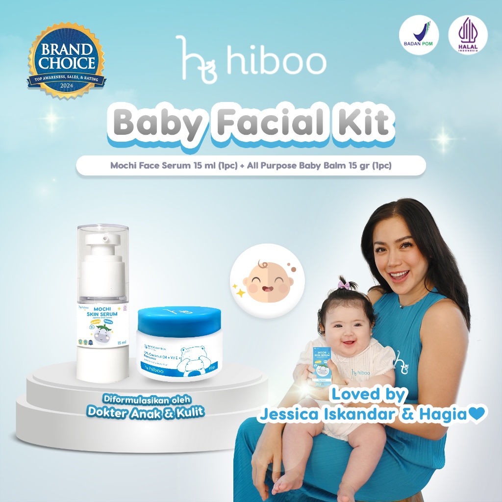 Hiboo Baby Facial Kit - Mochi Face Serum 15ml & All Purpose Baby Balm 15gram - Nourishing Cream Oil Balsem Kulit Skincare Anak