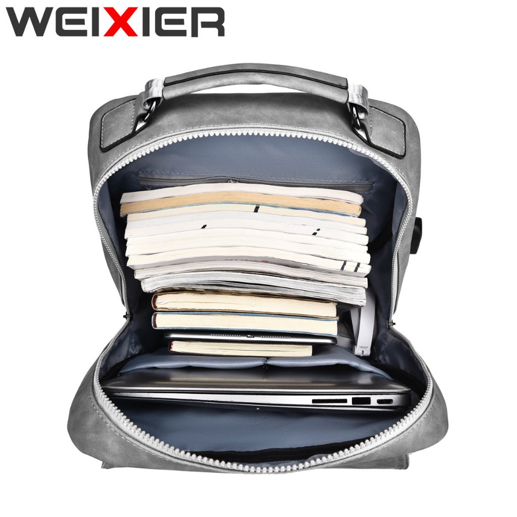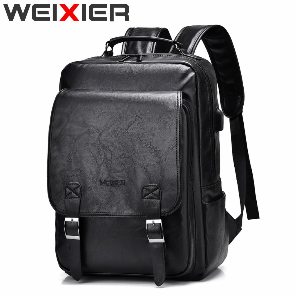 Weixier B677 Tas Punggung Pria Kulit Ransel Laptop Usb Port Wx-Os