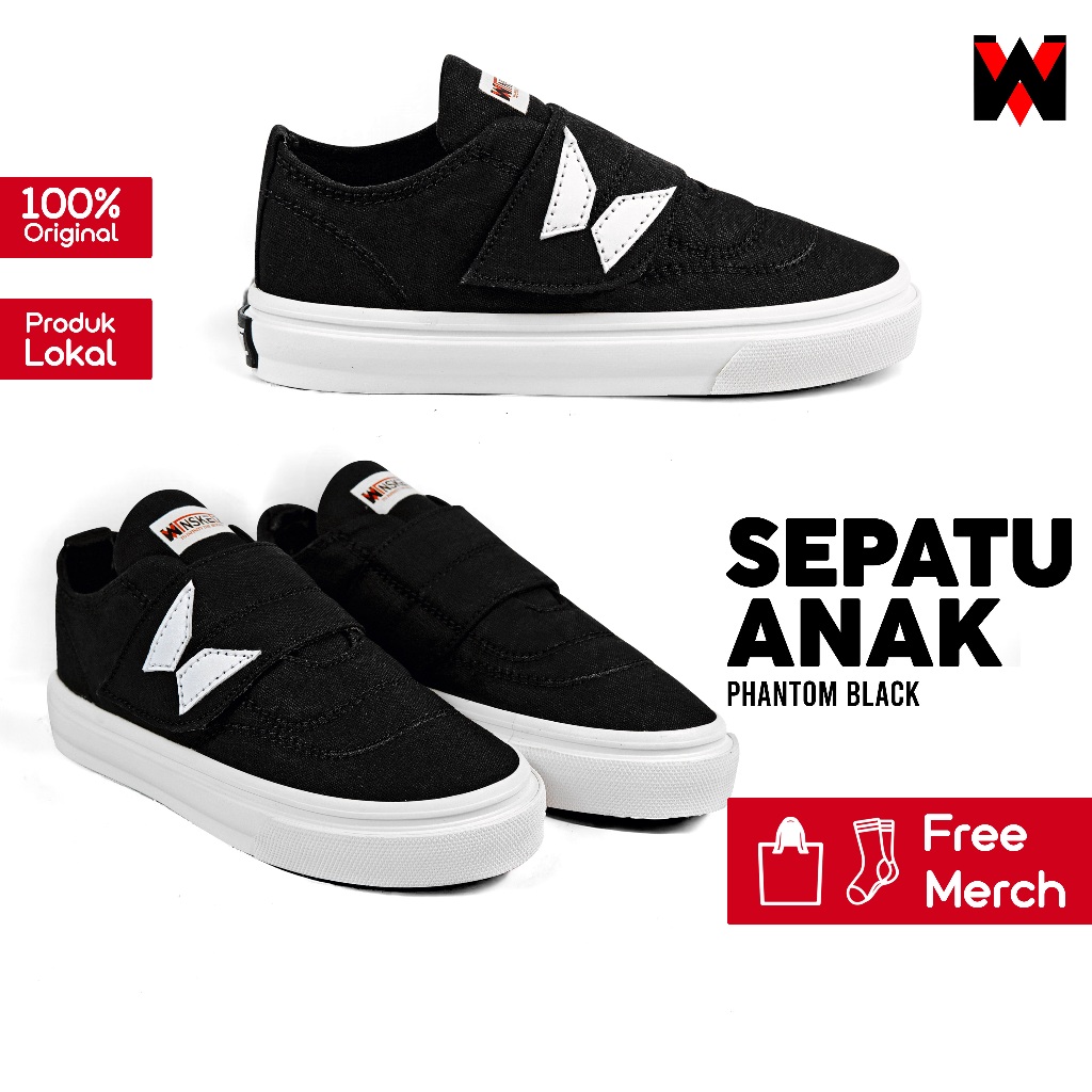 Winsketz - Sepatu Anak Sneakers Sekolah Hitam Laki Laki Perempuan Unisex Tk Sd Phantom Black Hitam