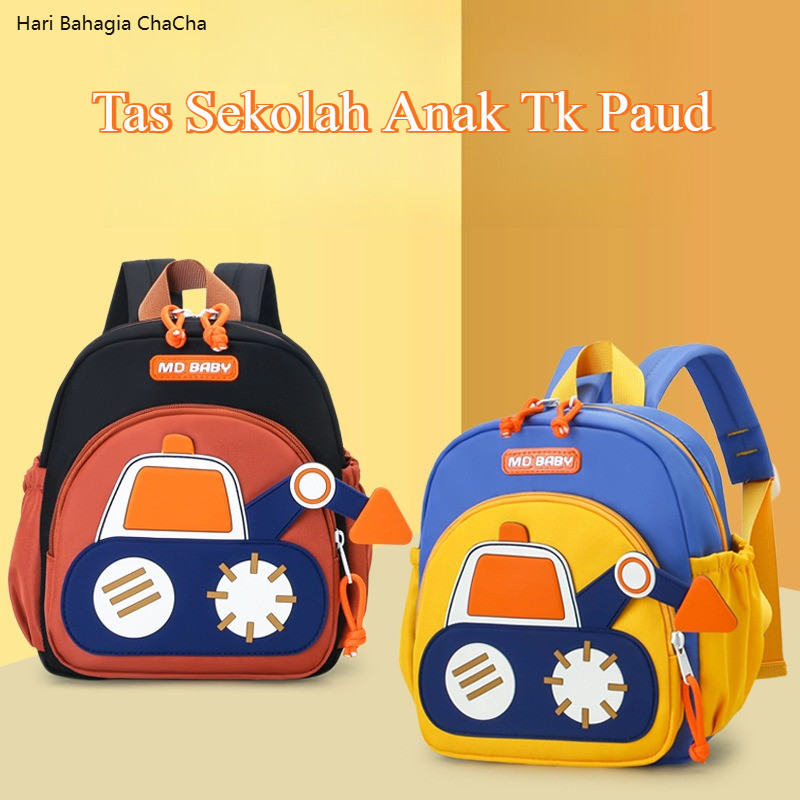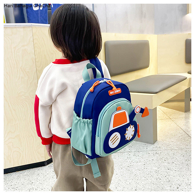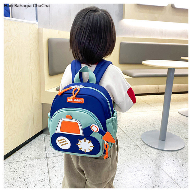 Tas Sekolah Anak Tk Paud Cartoon Excavator Two Tone Kids Ransel Backpack Ringan Bernapas
