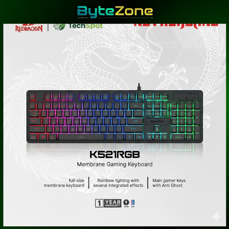 [Mall] Redragon Netherbane K521 | Keyboard Gaming Wired Membrane Full Size 104 Keys RGB Backlit | Nyaman&tahan Lama✨