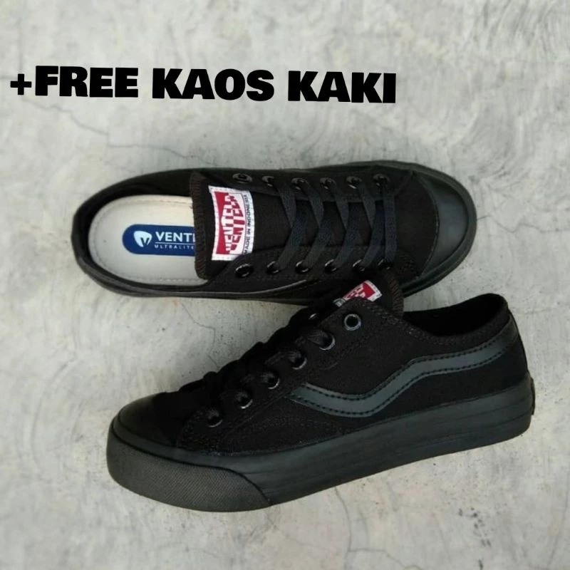Ventela All Black Low Original Sepatu Sekolah Ventela Full Black Hitam Polos